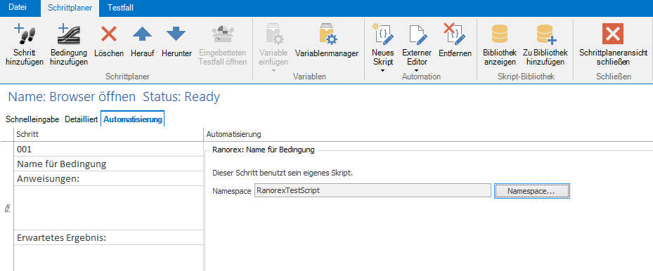 Wenn Sie ein Testskript von einer Bibliothek in einen Testfall übertragen wollen, können Sie dies einfach über Drag&Drop im rechten Bibliotheksbaum tun.