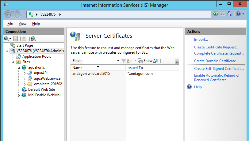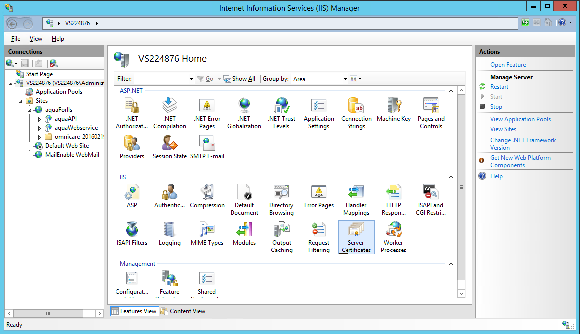Wählen Sie "Server Zertifikate" in dem mittleren Fenster aus