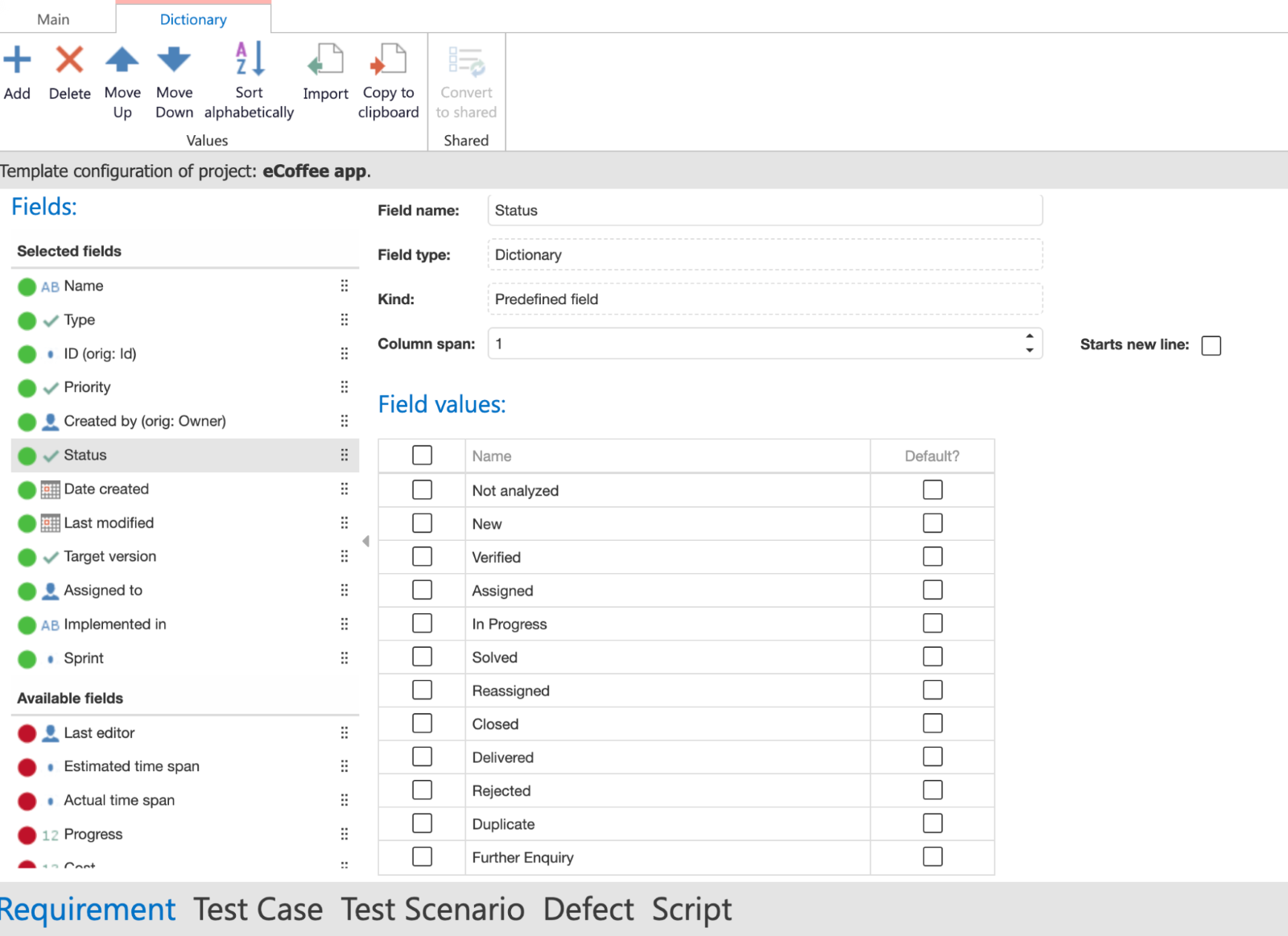 Wenn Sie Testfälle oder Anforderungen in ein leeres Projekt kopieren, können Sie die kopierten Elemente im Kontextmenü des Projekts finden&#x20;