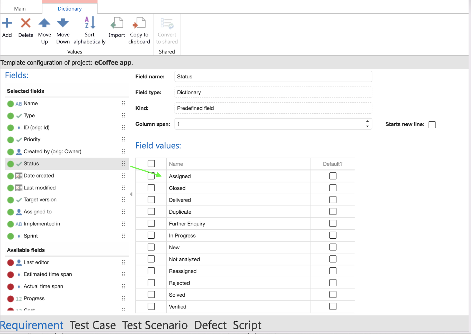 Schritt 1: Navigieren Sie zur Projektvorlage und erstellen oder wählen Sie ein bestehendes Mehrfachauswahl- oder Einfachauswahlfeld aus. &#x20;