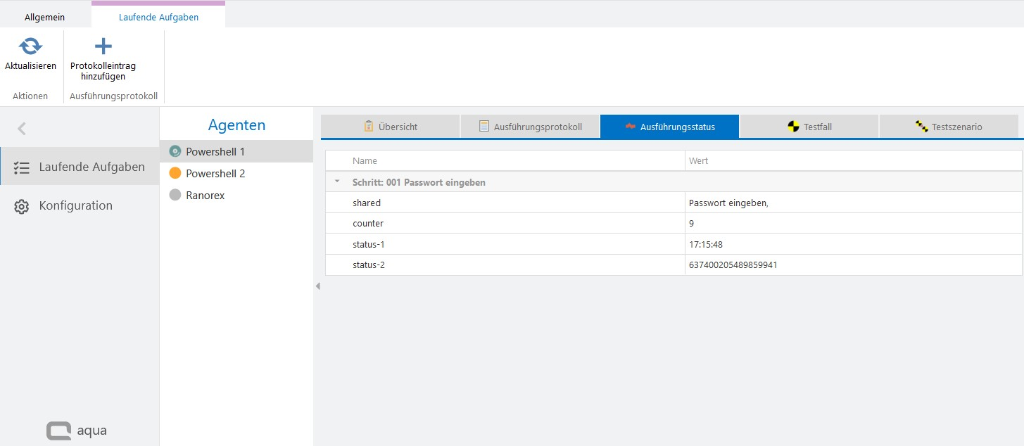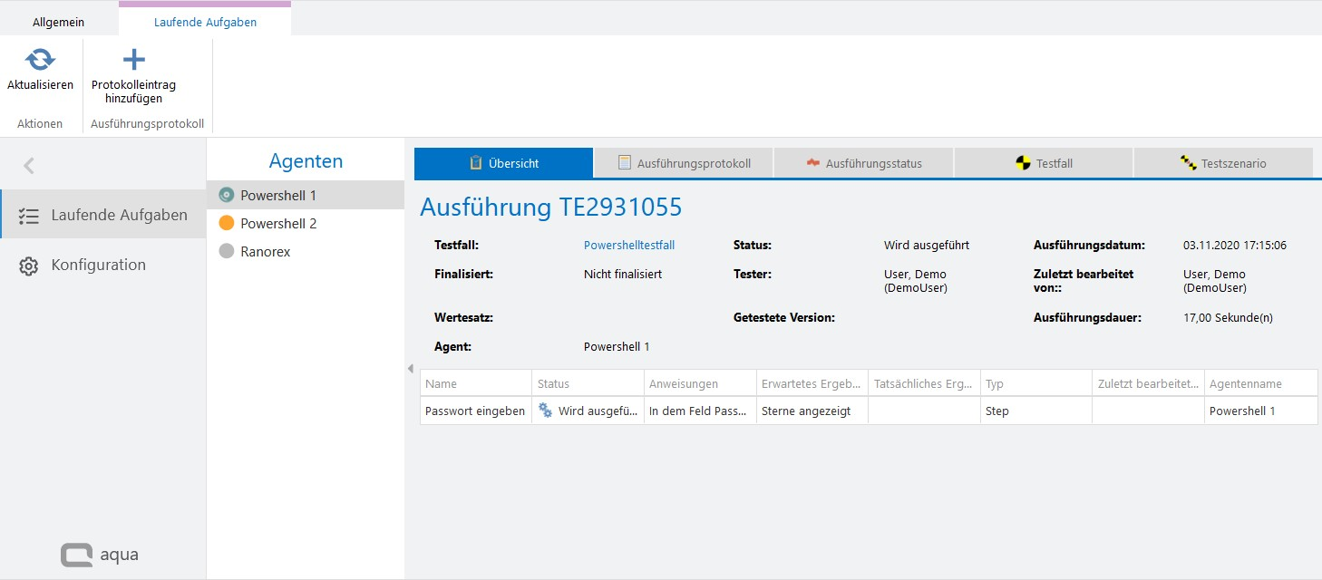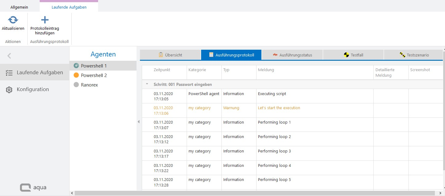 Die Ausführungsprotokolle können auch direkt im jeweiligen Testfall/Testszenario während oder nach der Ausführung geöffnet werden.