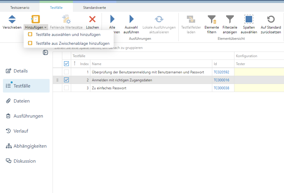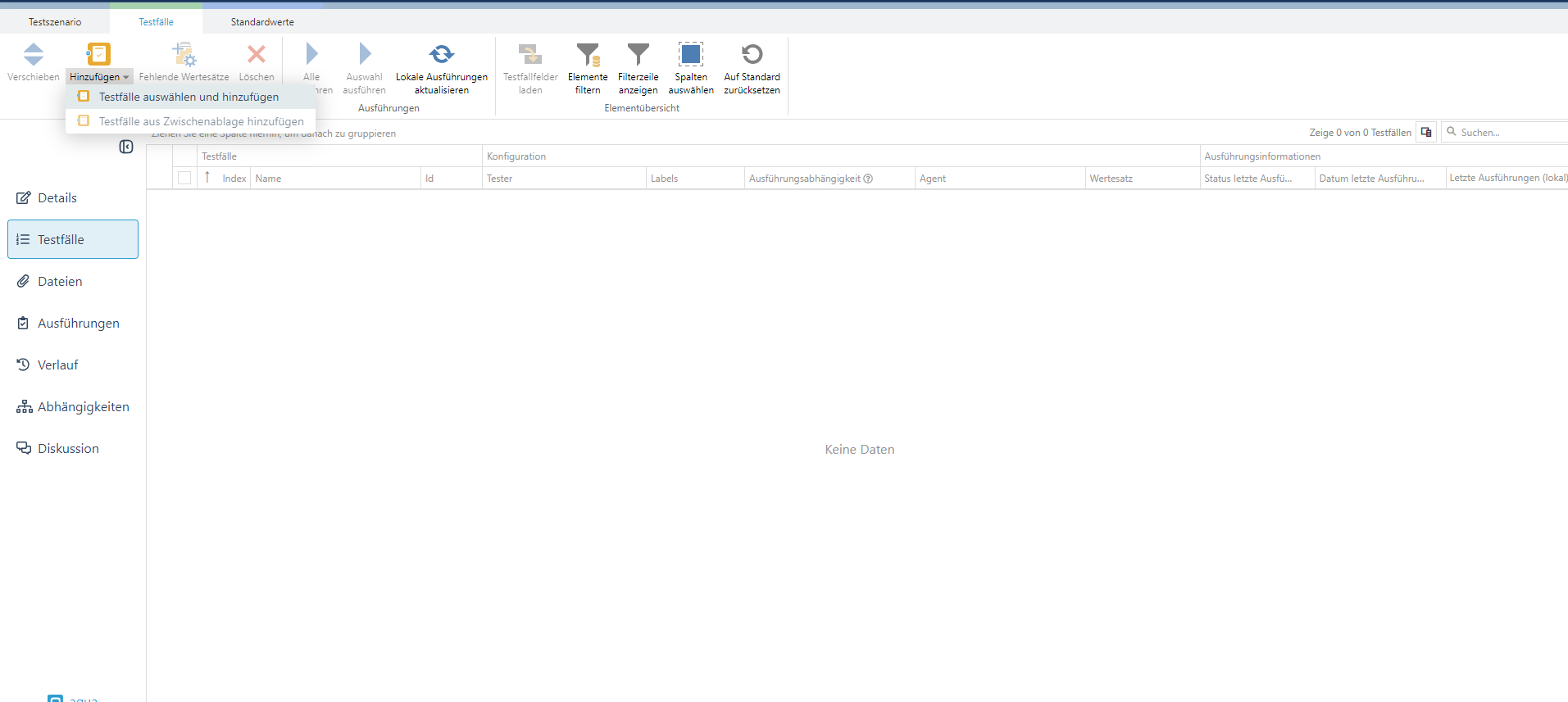 ### **1.** Testfälle zu einem Testszenario hinzufügen