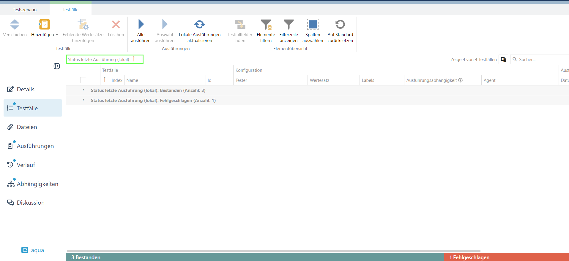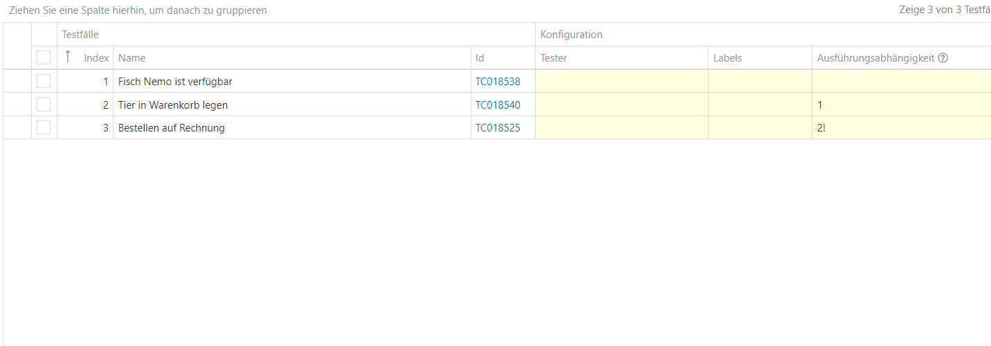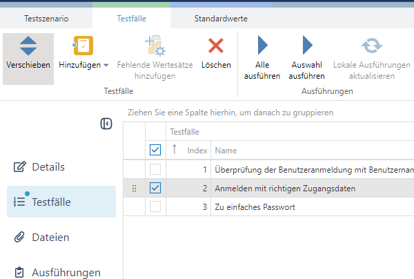 Die Reihenfolge der Testfälle kann per Drag\&Drop oder über die Schaltfläche Verschieben festgelegt werden.