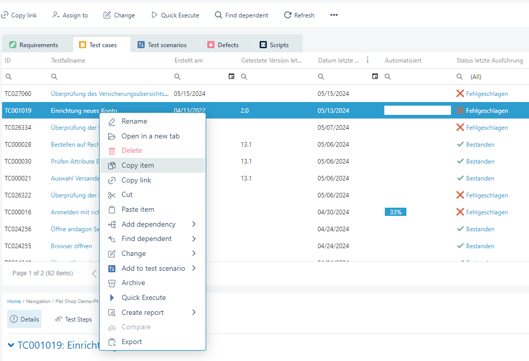 <figure><img src="https://1531273042-files.gitbook.io/~/files/v0/b/gitbook-x-prod.appspot.com/o/spaces%2FG5QhcVbqFZtVzVvlkYfm%2Fuploads%2FfF4BN77UPg4iG48N1sfY%2Fimage.png?alt=media&#x26;token=a48de31b-0007-459a-808f-c57ce109cd2f" alt=""><figcaption><p>Den Testfall aus dem Navigationsraster kopieren</p></figcaption></figure>