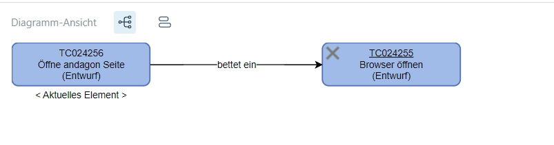 Ein verschachtelter Testfall wird als Abhängigkeit angezeigt.