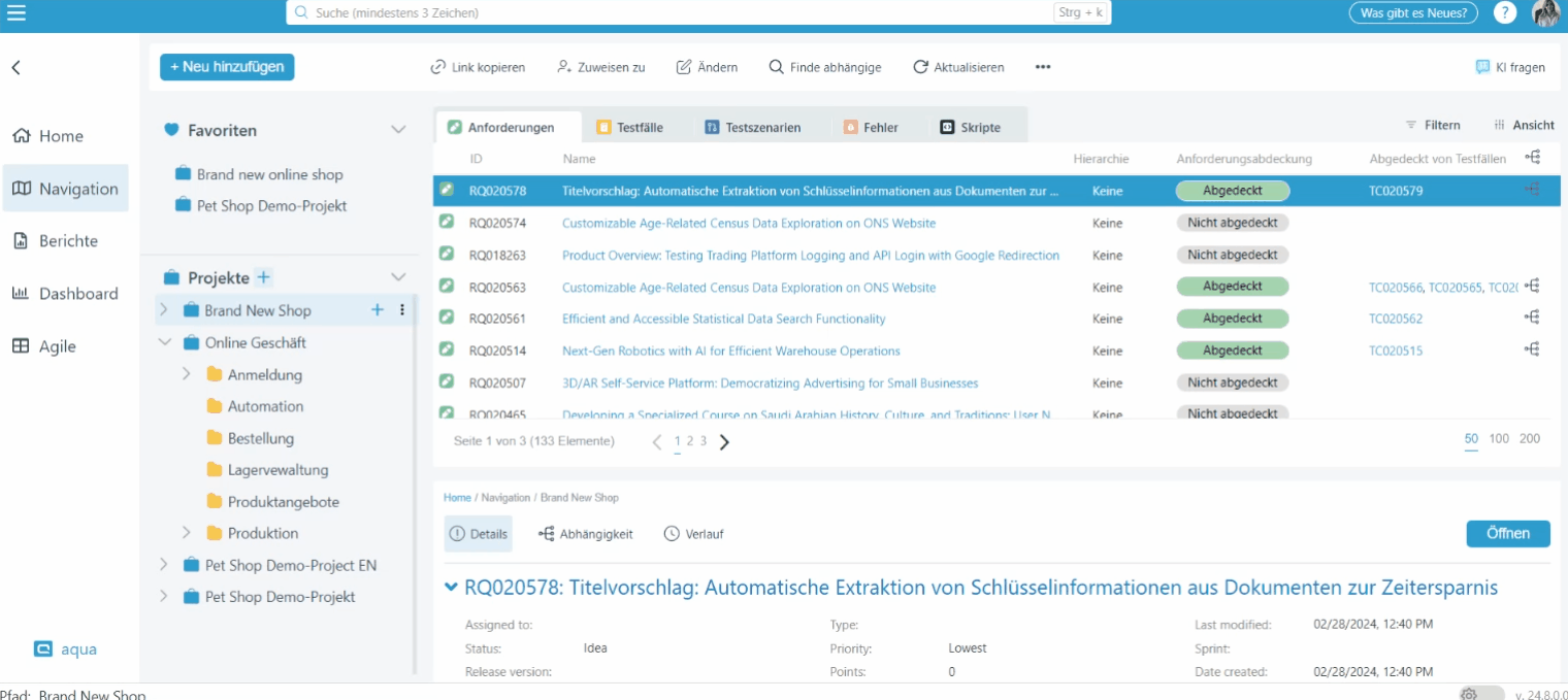 So fügen Sie den Link ein, der zum Navigieren zu den Elementen im Webclient führt, siehe den folgenden [FAQ-Artikel.](https://docs.aqua-cloud.io/documentation/de-documentation/~/revisions/jTwnkJ1ie293nfxptIGP/installation-fur-on-premise/system-anforderungen/e-mail-benachrichtigung-web-client-links)