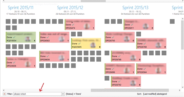 In the planning board, you get a better overview of which tasks are relevant to you by using filters. If you set a filter, the sprint elements will be displayed as grey squares.
