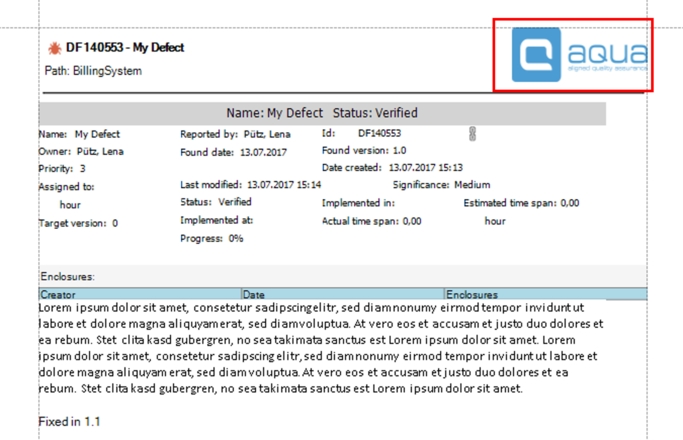 In aqua, you can do a printout of items, e.g. defects.