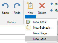 To add a new gate, you can proceed as described before, with the difference that you select 'New Gate' after clicking the New button.