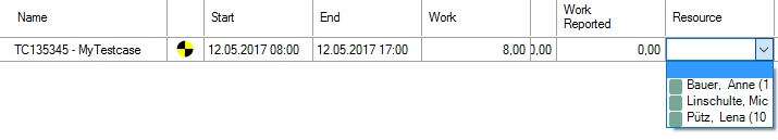 In aqua's Project Planning module, it is possible to add resources to a task. To assign a resource to a task, you need to press the button. Then you can select a resource from the project in the task.