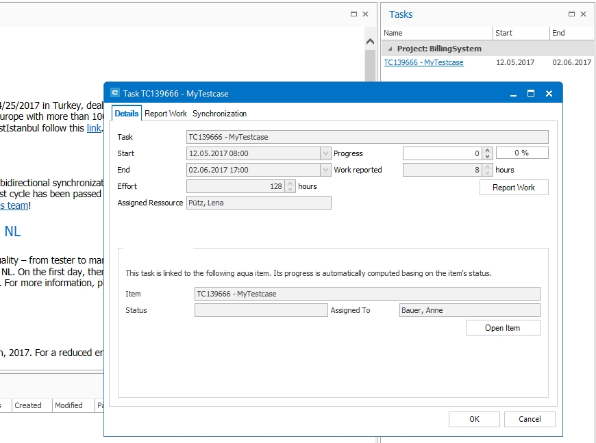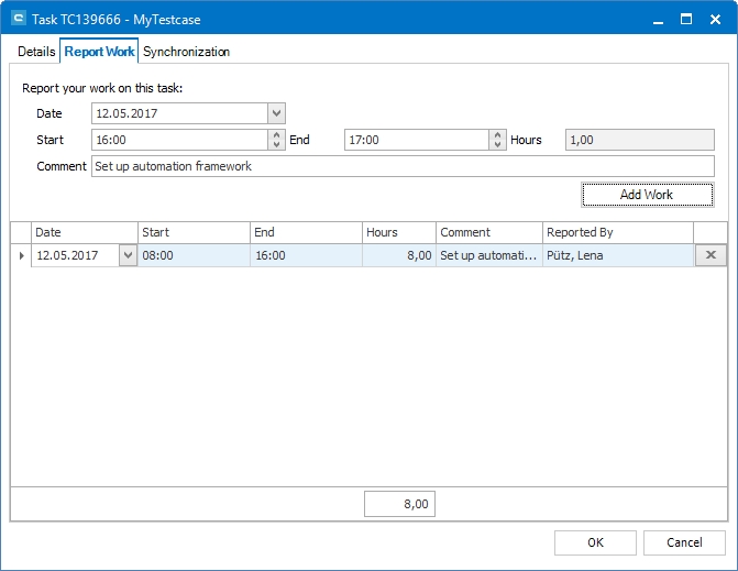 Resources can report their work at tasks by right-clicking them, selecting Edit and then switching to tab Report Work.