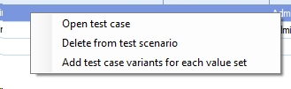 If a test case is parameterized, the default value set is entered by default. All other values can be added via right-click and choosing Add test case variants for each value set.