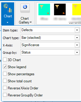2nd step: choose a chart and click on it. Click on the Chart button to define item type and chart type, and define the other fields classifying the graph.