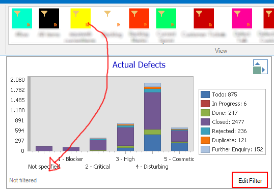 3rd step: combine the chart with a filter. Click on a filter in Views or edit the filter in the dashboard.