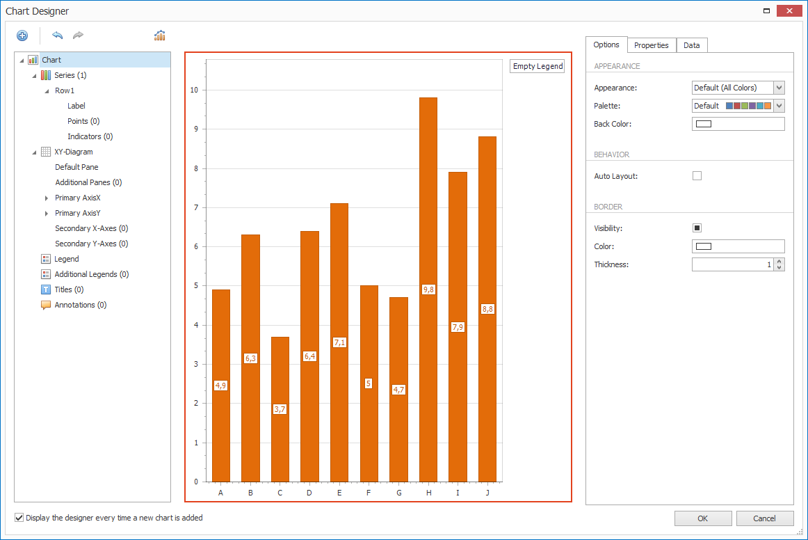 Diagrams are charts which are based on the data available in the report. Here, you need to be careful because even if a diagram is put into a band, the data used in this diagram is taken from the entire report. To be able to draw a diagram just based on the data available within one band, you need to manipulate the filter of the diagram by script, best done with the Before Print event.