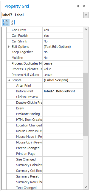 During script development, you can make use of the entire .NET library, and you reference all elements and their respective properties within the report.