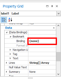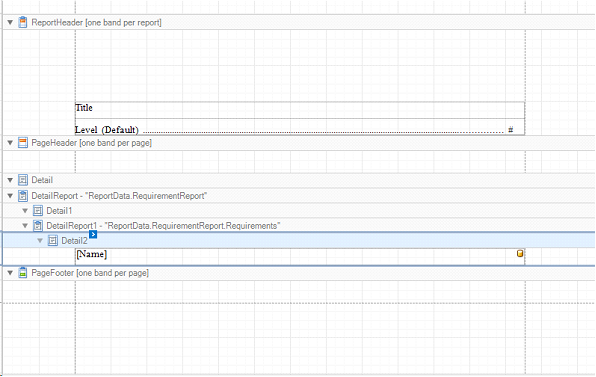 There, define the Binding in Data Binding -> Bookmark. Then, define it using Data->ReportData->RequirementReport->Requirements->Name.