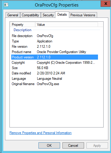 After that, we configure our Oracle Version. For that we open folder C:\app\Administrator\product\11.2.0\client_1\ODP.NET\bin\2.x, open file Ora-ProvCfg and identify the version. This version has to be inserted into the Web.config file.