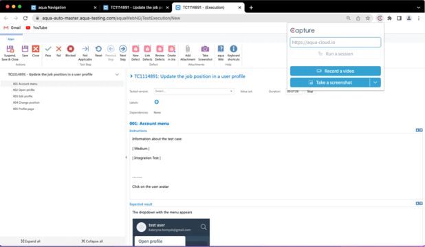 aqua tip: If you haven’t used the extension before, Capture is a helpful tool to record video, automatically capture events, and convert the screenshots or recording directly into Defect or Requirements in aqua or in Jira!